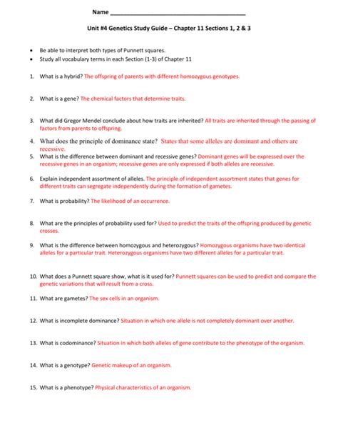 Download chapter 11 introduction to genetics study guide answer key Doc